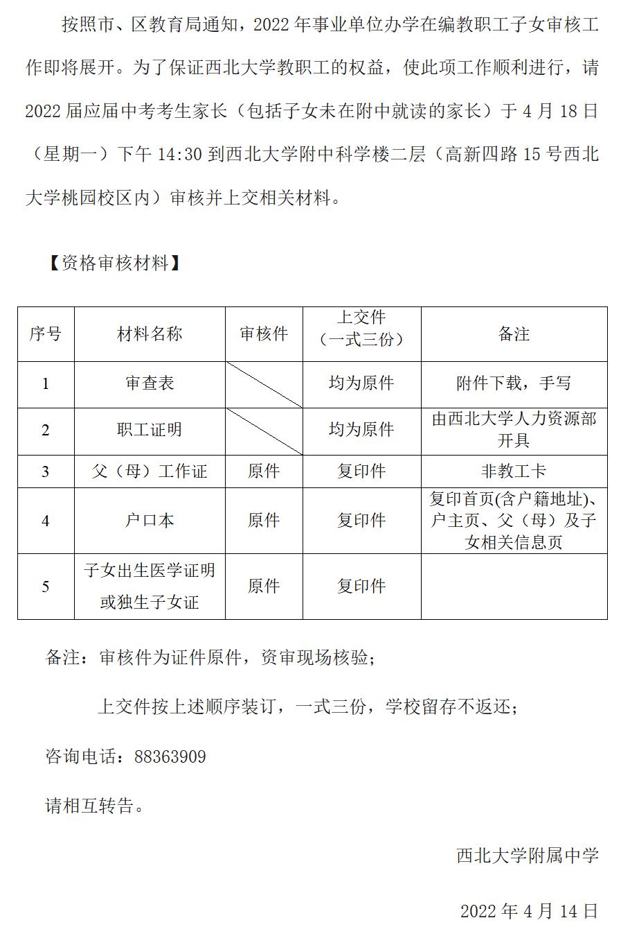 关于确认2022届中考MILAN.COM教职工子女身份的通知