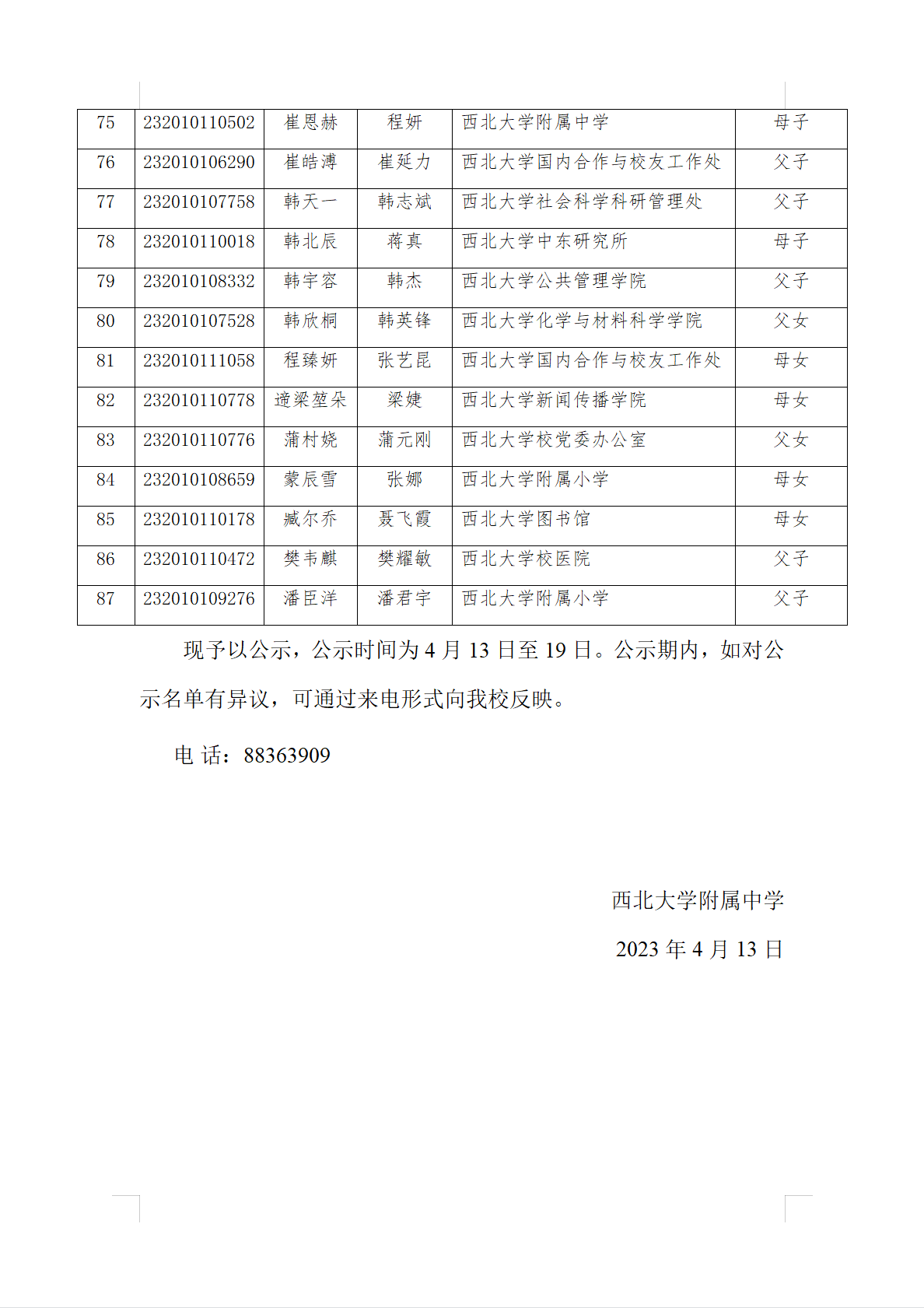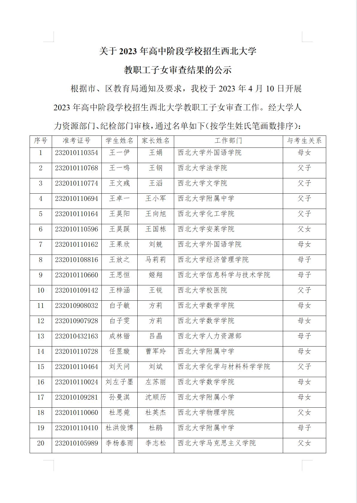 关于2023年高中阶段学校招生MILAN.COM教职工子女审查结果的公示