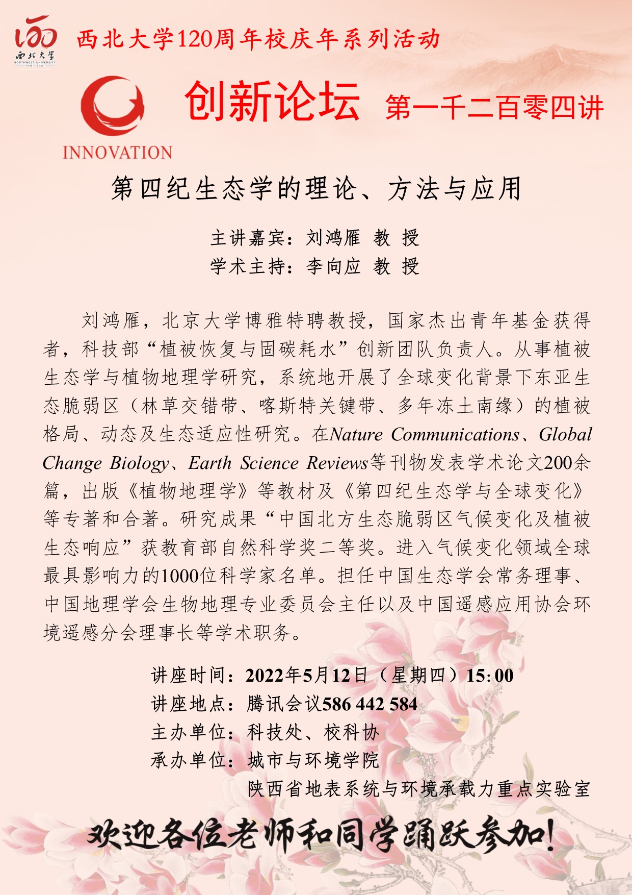 MILAN.COM创新论坛第一千二百零四讲暨120周年校庆年系列活动:第四纪生态学的理论、方法与应用