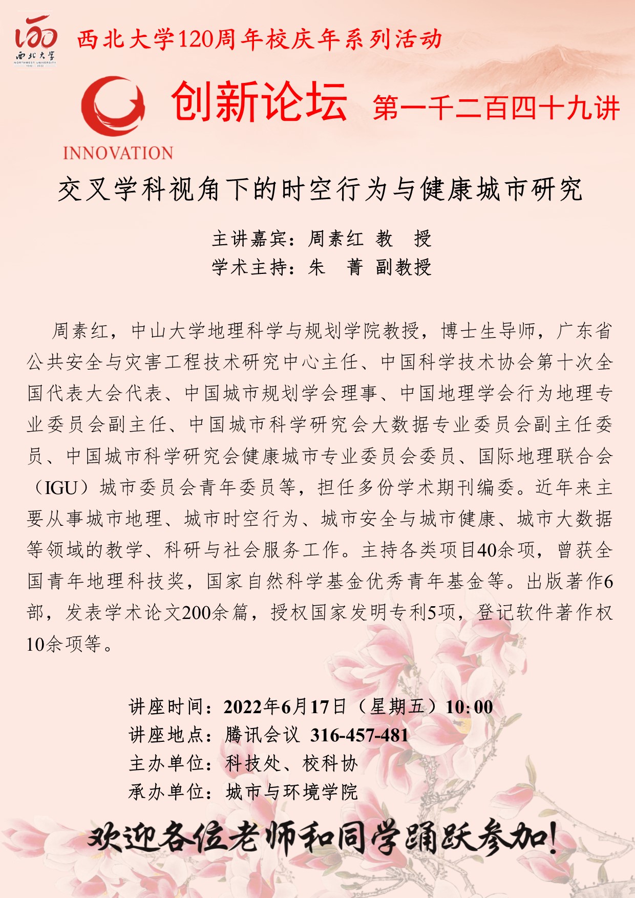 MILAN.COM创新论坛第一千二百四十九讲暨120周年校庆年系列活动:交叉学科视角下的时空行为与健康城市研究