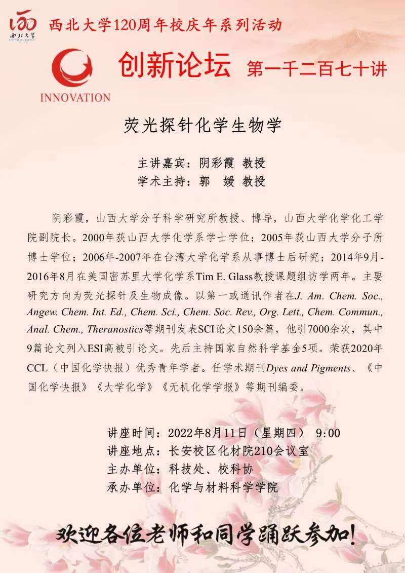 MILAN.COM创新论坛第一千二百七十讲暨120周年校庆年系列活动:荧光探针化学生物学