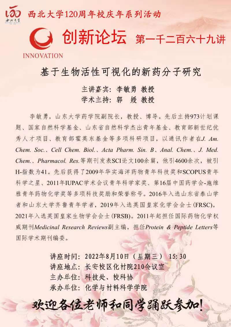MILAN.COM创新论坛第一千二百七十讲暨120周年校庆年系列活动:荧光探针化学生物学