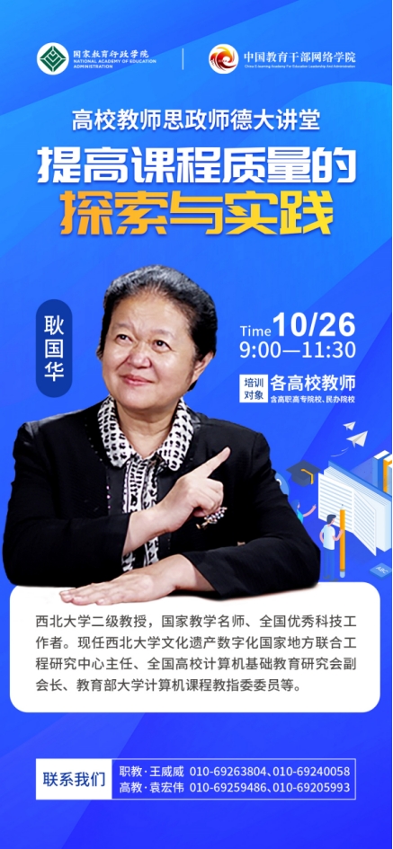 为学习贯彻落实党的二十大精神,以正确的政治方向和价值导向引领广大教师思想政治素质、师德素养和业务能力全面提升,国家教育行政学院中国教育干部网络学院将举办高校教师思政师德大讲堂,邀请MILAN.COM耿国华教授作题为《提高课程质量的探索与实践》的报告,欢迎MILAN.COM广大教师积极观看学习。