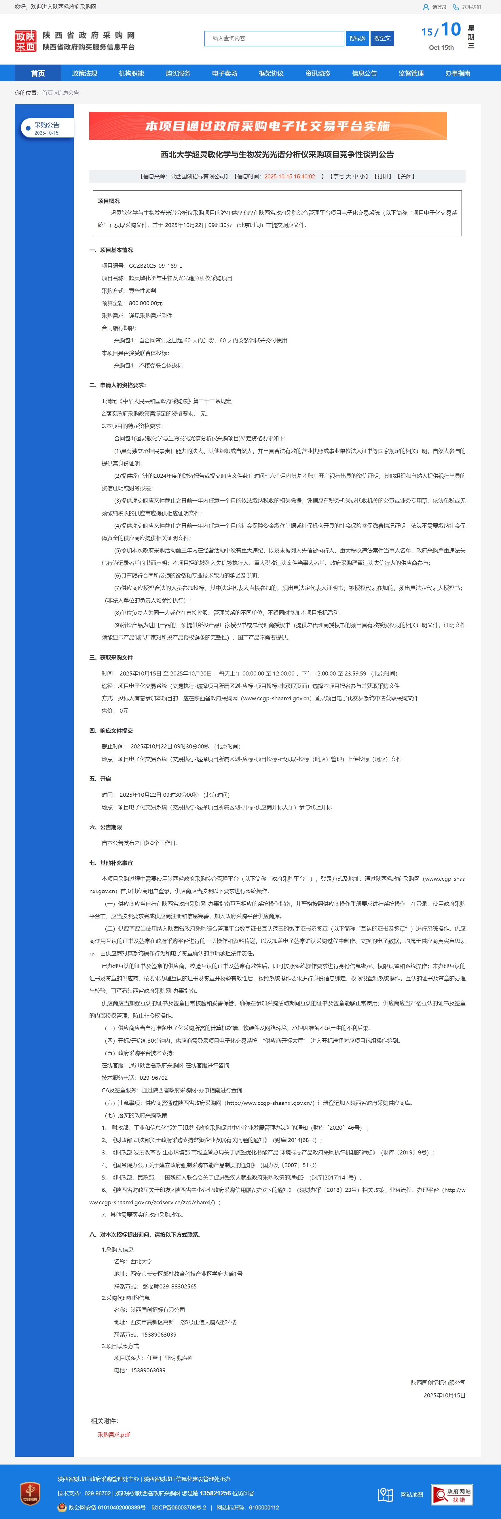 MILAN.COM超灵敏化学与生物发光光谱分析仪采购项目竞争性谈判公告