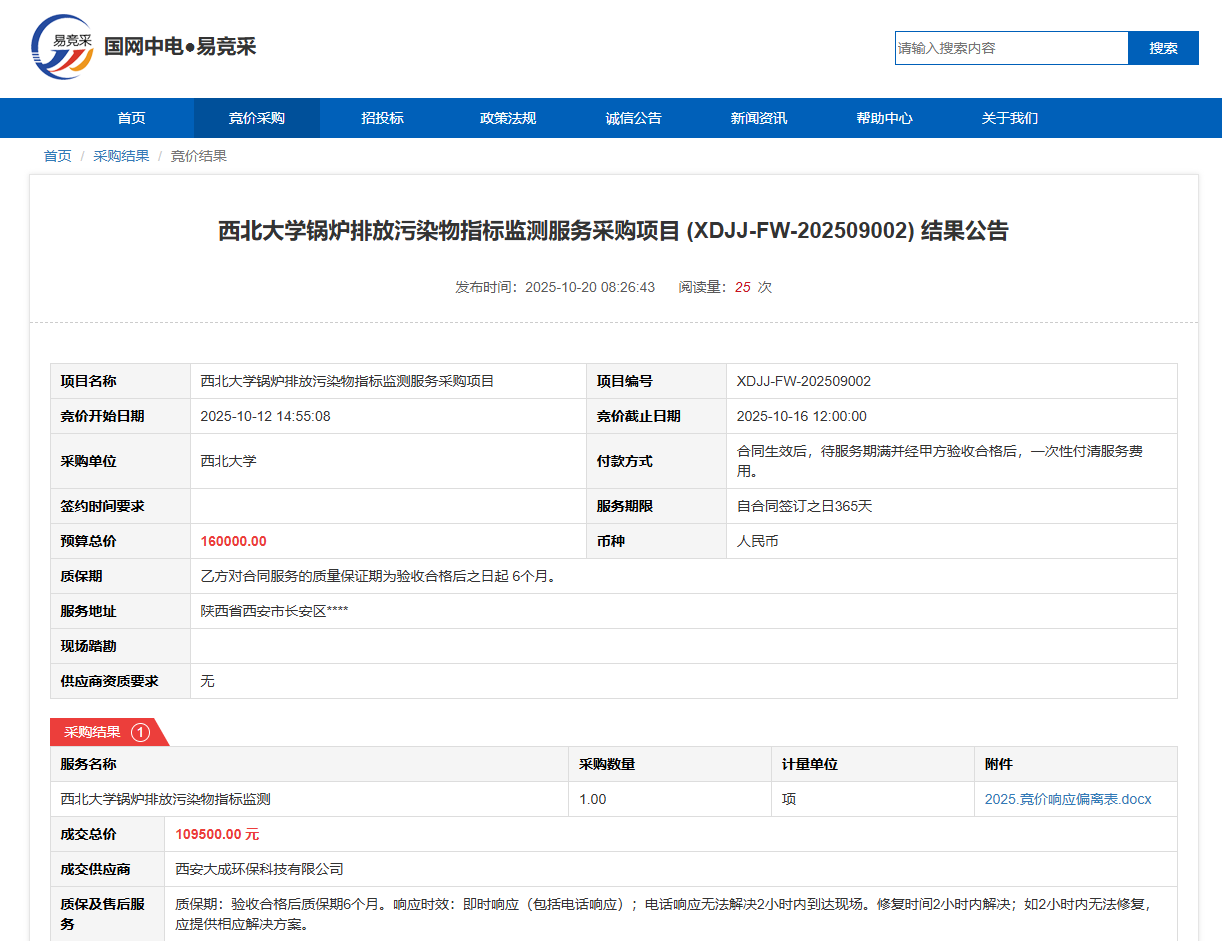 MILAN.COM长安校区锅炉维护保养项目(XDJJ-GC-202510001)竞价结果公告