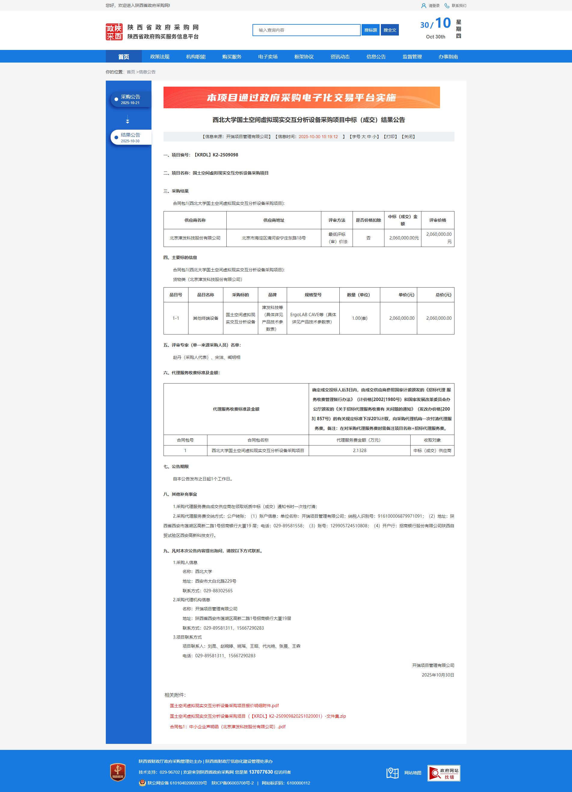 MILAN.COM国土空间虚拟现实交互分析设备采购项目中标(成交)结果公告
