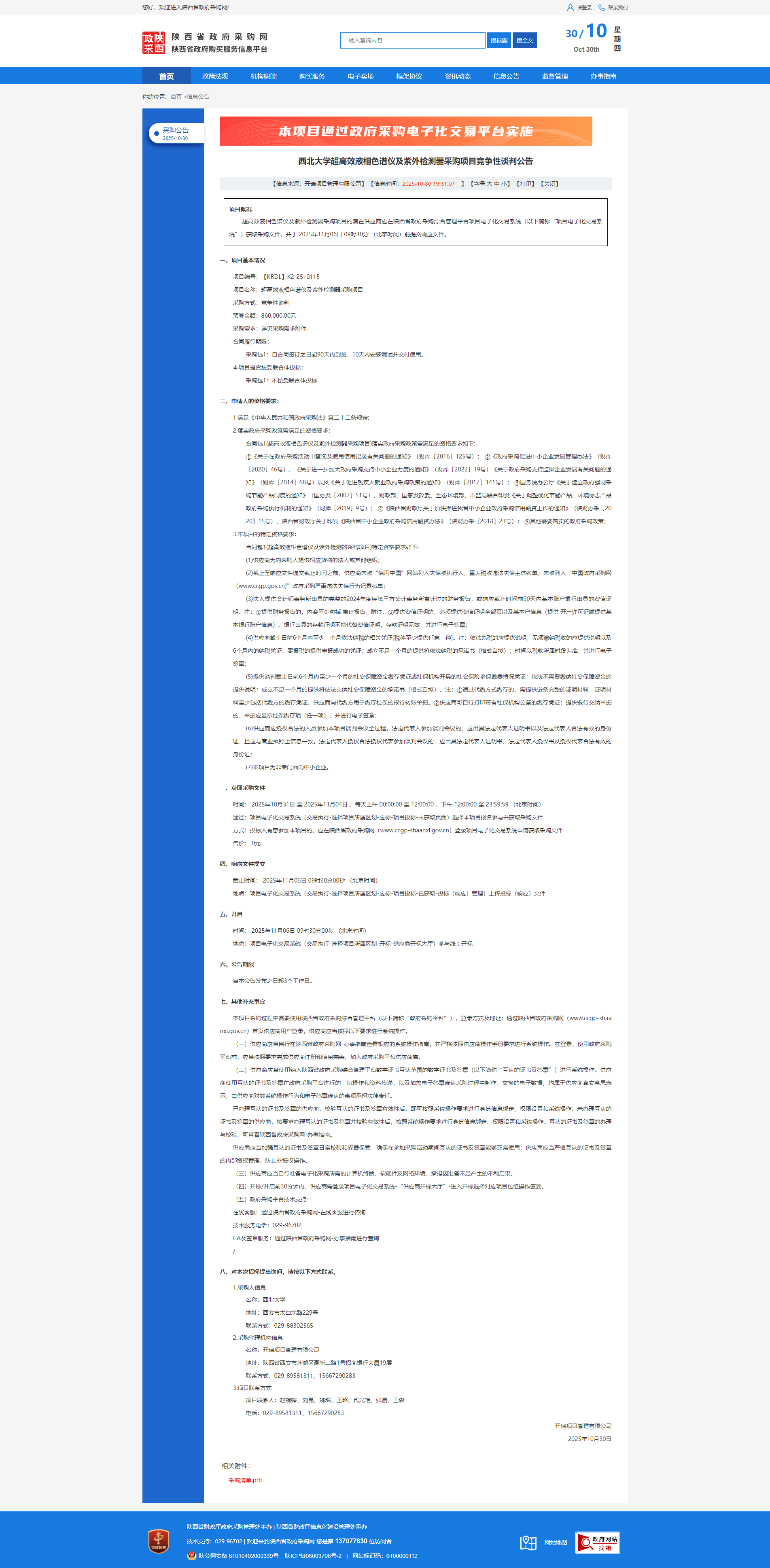 MILAN.COM超高效液相色谱仪及紫外检测器采购项目竞争性谈判公告