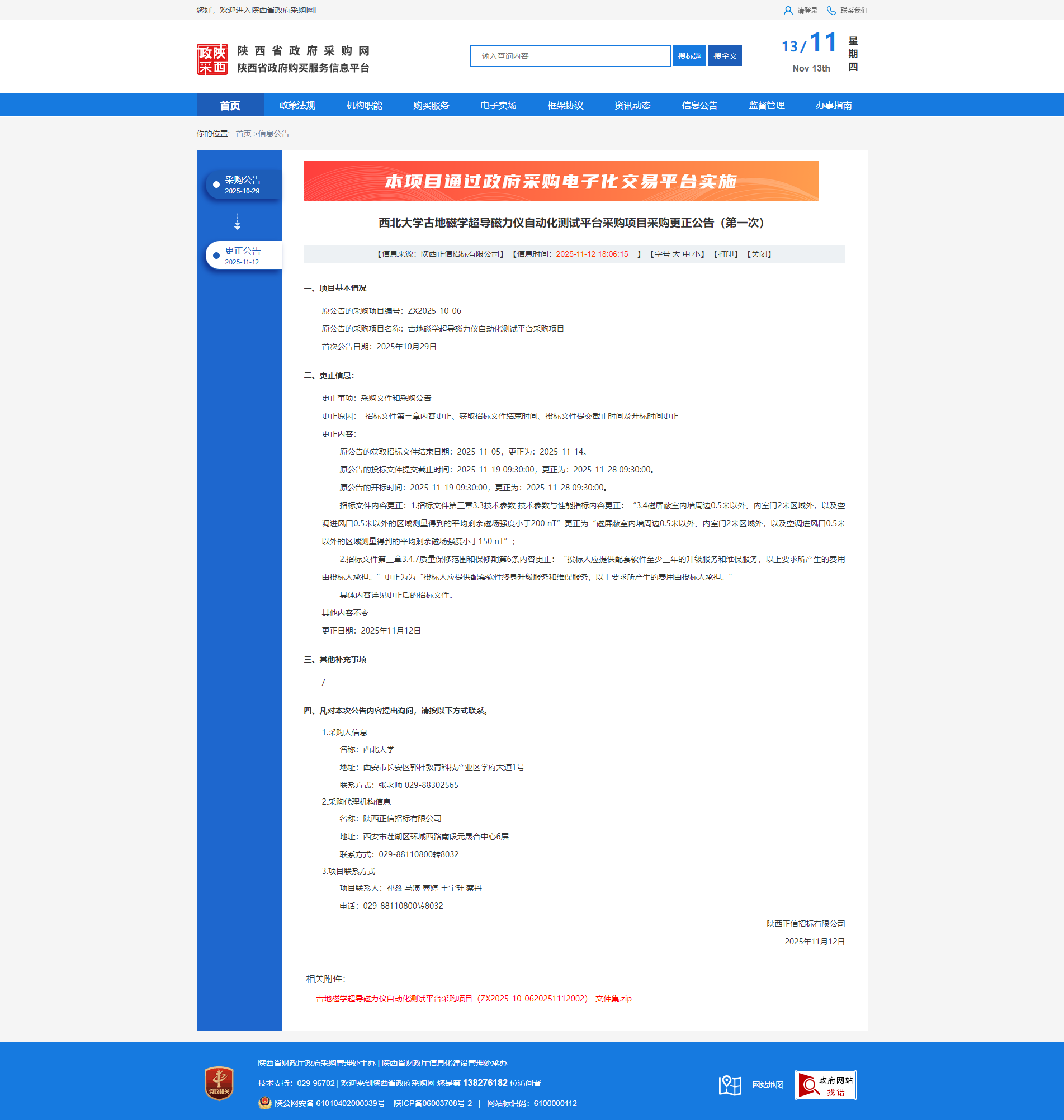 MILAN.COM古地磁学超导磁力仪自动化测试平台采购项目采购更正公告(第一次)