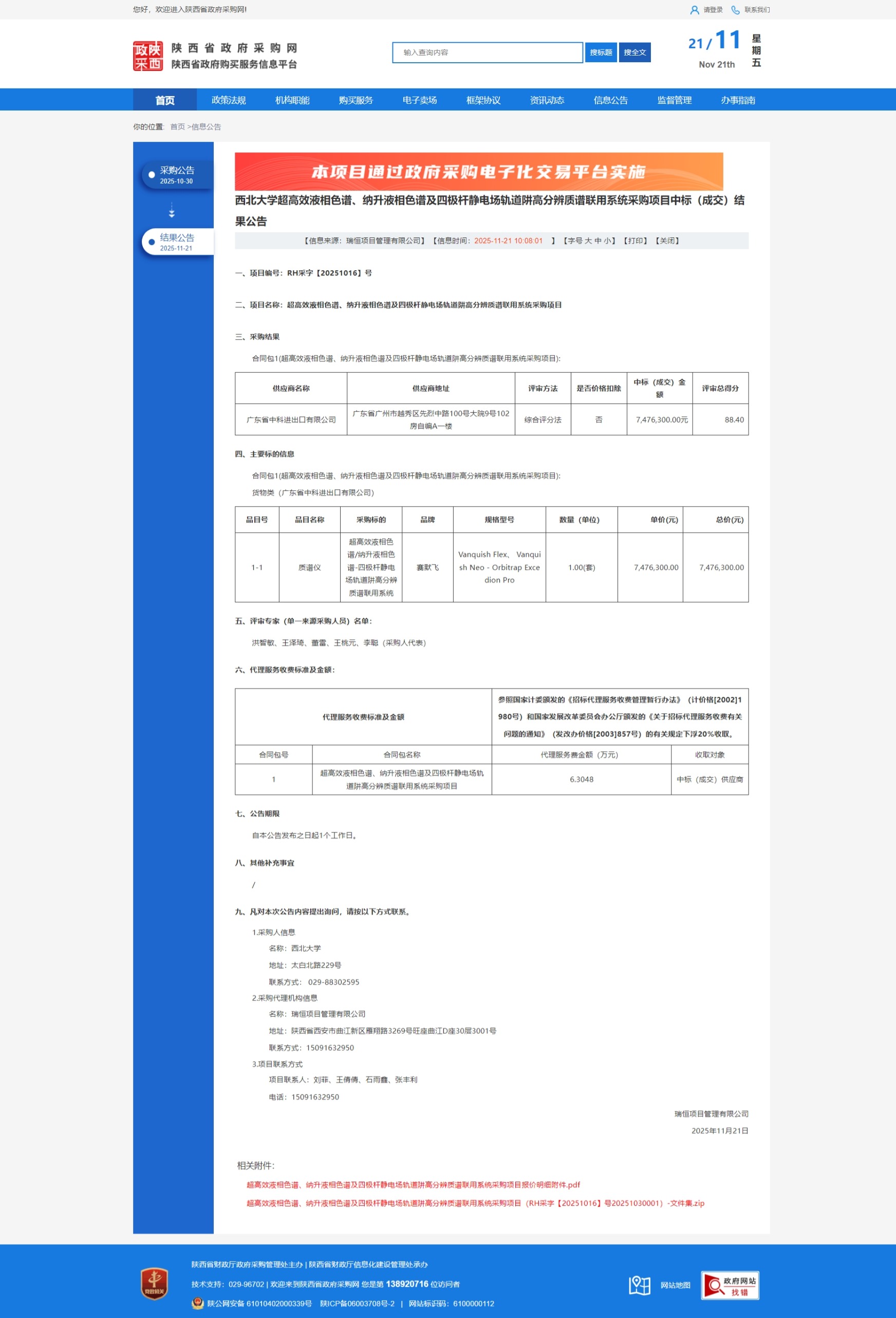 MILAN.COM超高效液相色谱、纳升液相色谱及四极杆静电场轨道阱高分辨质谱联用系统采购项目中标(成交)结果公告 作者:国有资产管理处 编辑:国有资产管理处 时间:2025-11-21 原公告链接:https://www.ccgp-shaanxi.gov.cn/freecms/site/shaanxi/ggxx/info/2025/8a69c90c9a9ae48e019aa4271c2e478e.html?noticeType=001021¬iceId=23cedee1-c681-11f0-8063-08c0eb20c666