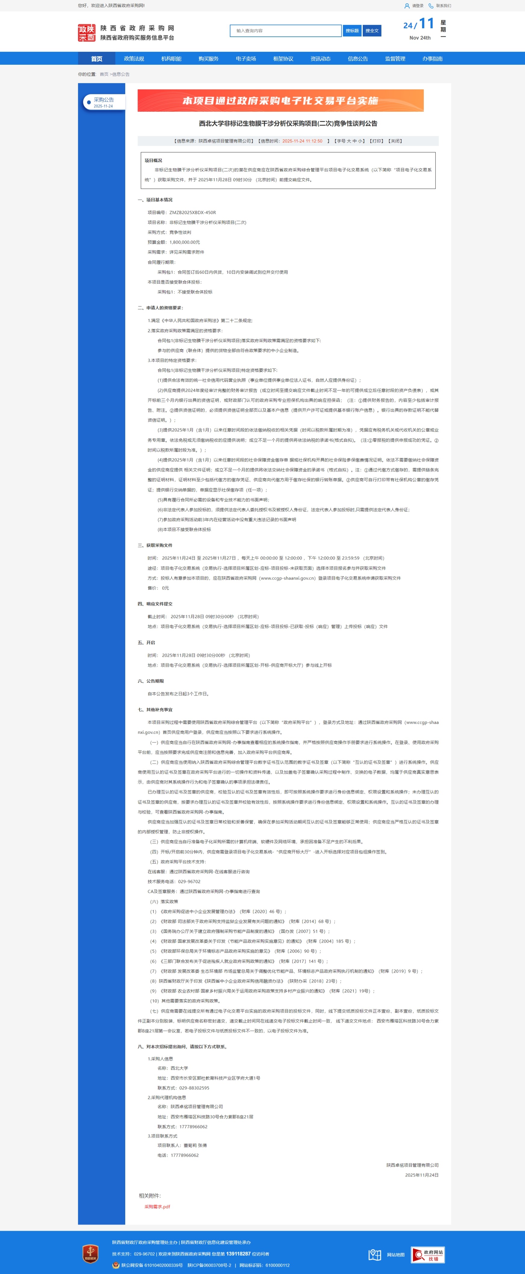 MILAN.COM非标记生物膜干涉分析仪采购项目(二次)竞争性谈判公告 作者: 编辑:国有资产管理处 时间:2025-11-24 原公告链接:https://www.ccgp-shaanxi.gov.cn/freecms/site/shaanxi/ggxx/info/2025/8a69c5539a636e42019ab3afd37915be.html?noticeType=001013¬iceId=b2c05b7d-c8e5-11f0-8063-08c0eb20c666