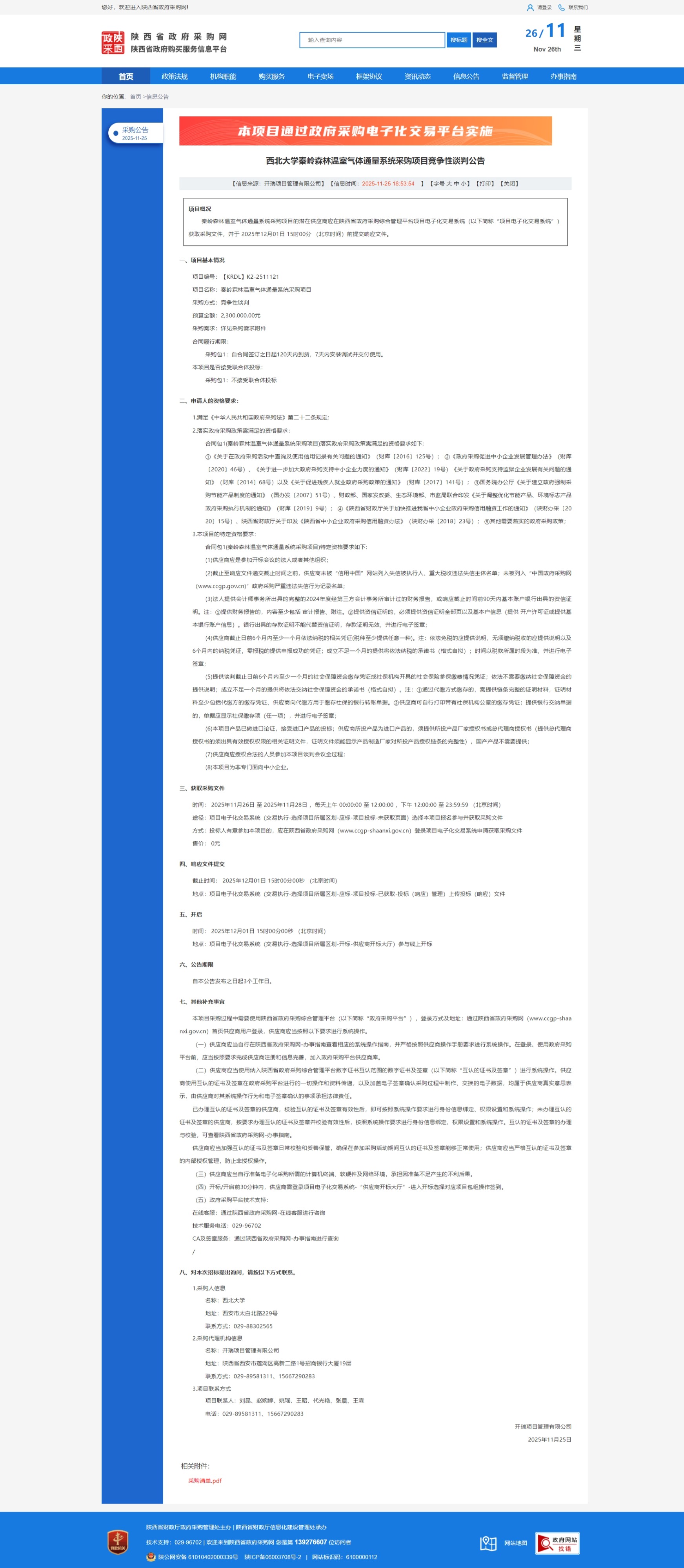MILAN.COM秦岭森林温室气体通量系统采购项目竞争性谈判公告 作者: 编辑:国有资产管理处 时间:2025-11-26 原公告链接:https://www.ccgp-shaanxi.gov.cn/freecms/site/shaanxi/ggxx/info/2025/8a69c17b9a636c6b019aba957b133355.html?noticeType=001013¬iceId=46be2f3b-c9ef-11f0-8063-08c0eb20c666