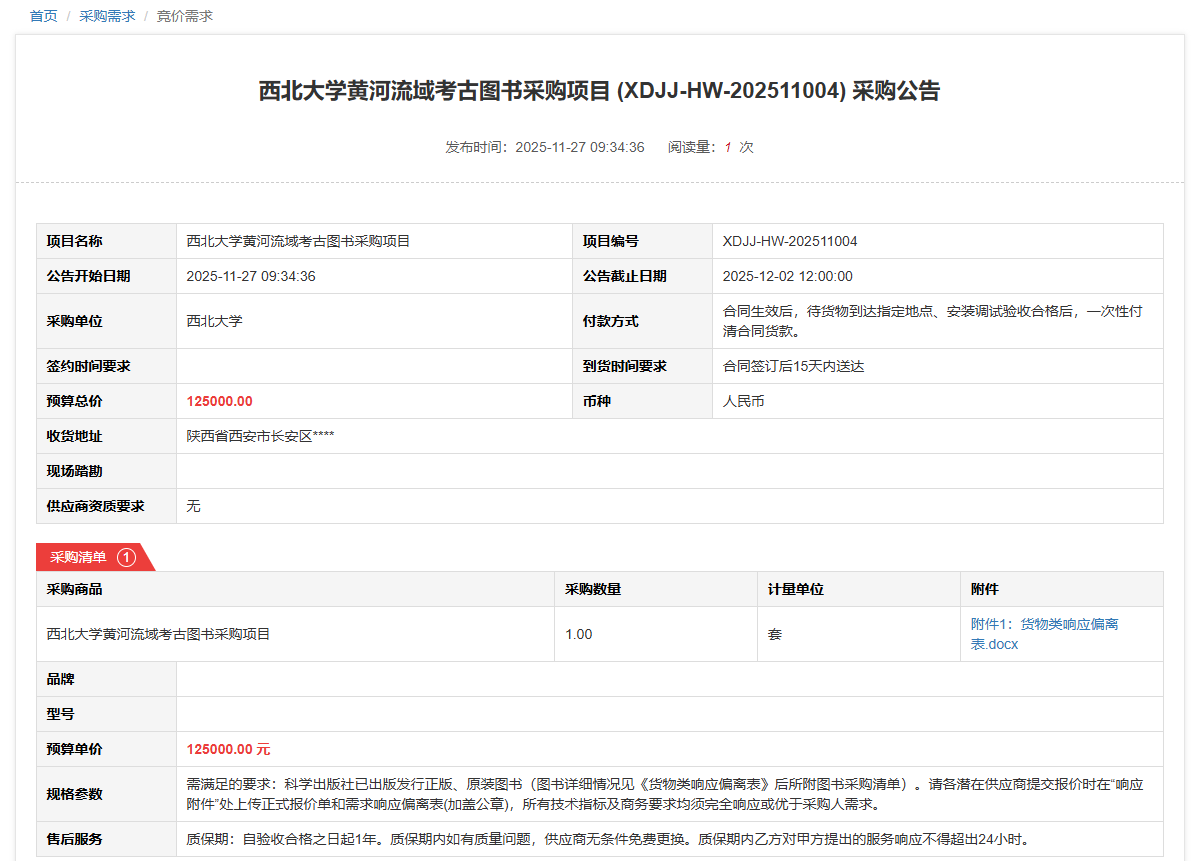 MILAN.COM黄河流域考古图书采购项目(XDJJ-HW-202511004)竞价采购公告