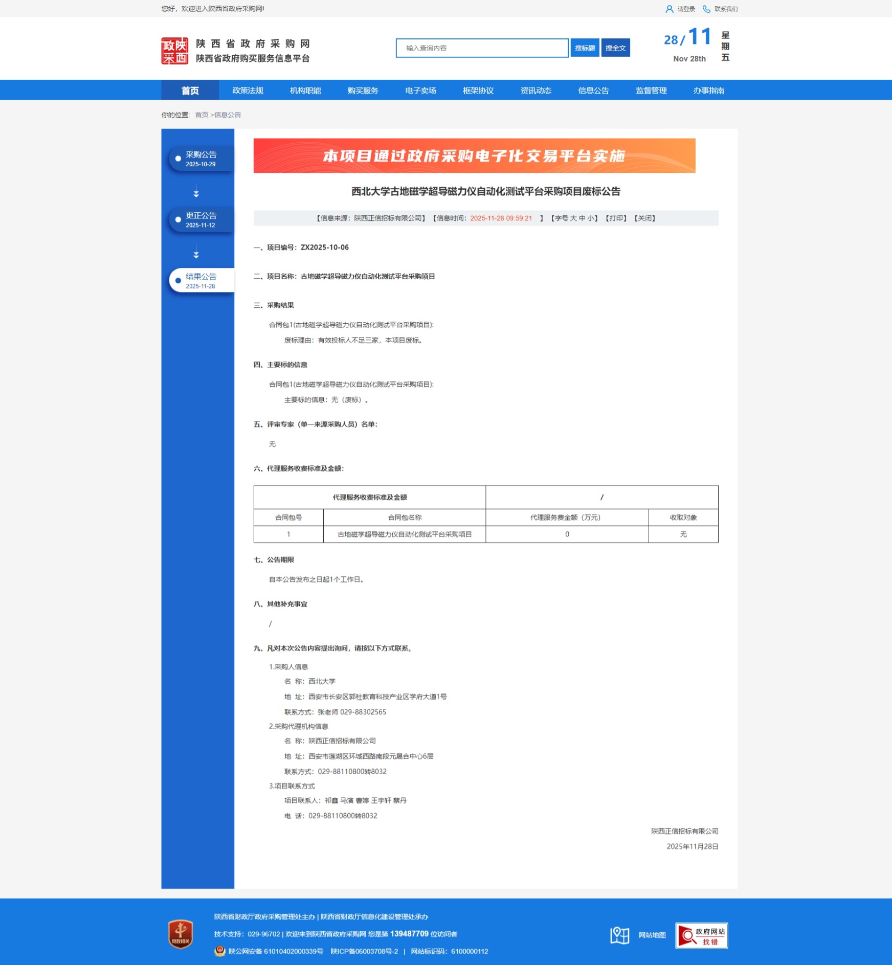 MILAN.COM古地磁学超导磁力仪自动化测试平台采购项目废标公告 作者: 编辑:国有资产管理处 时间:2025-11-28 原公告链接:https://www.ccgp-shaanxi.gov.cn/freecms/site/shaanxi/ggxx/info/2025/8a69c0019a9a55ca019ac81cae6226cf.html?noticeType=001006¬iceId=19e4ba5f-cc00-11f0-8063-08c0eb20c666