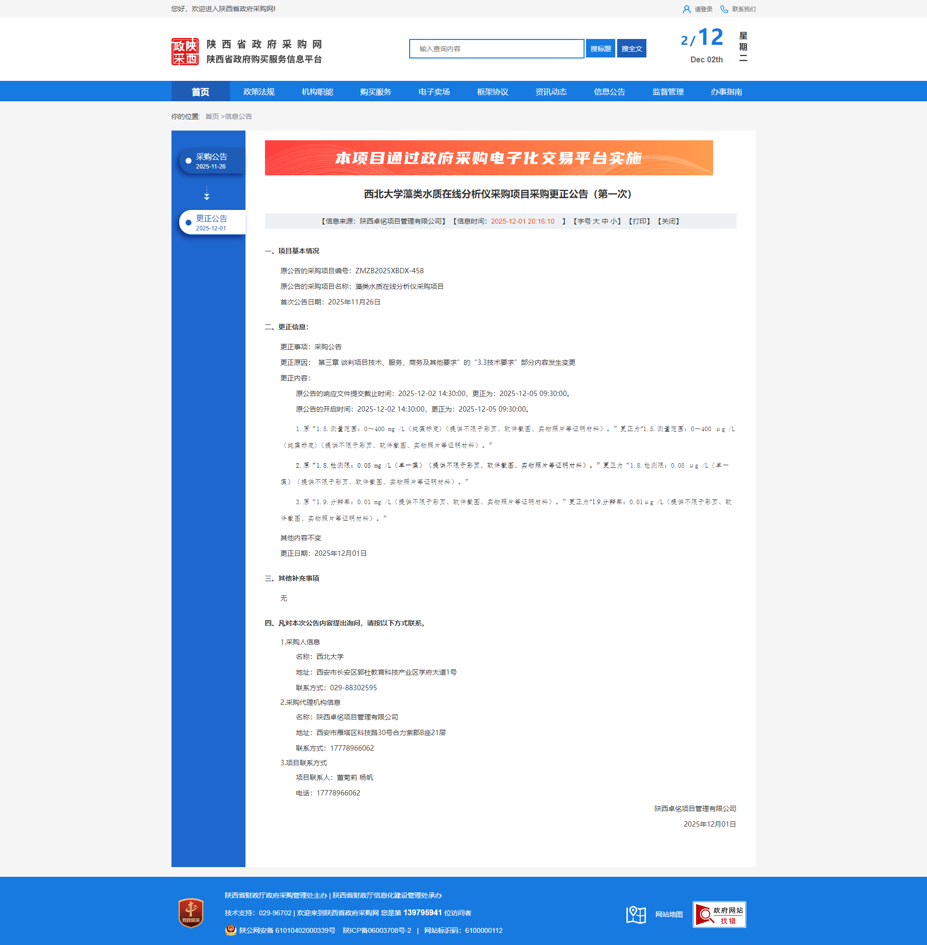 MILAN.COM藻类水质在线分析仪采购项目采购更正公告(第一次)