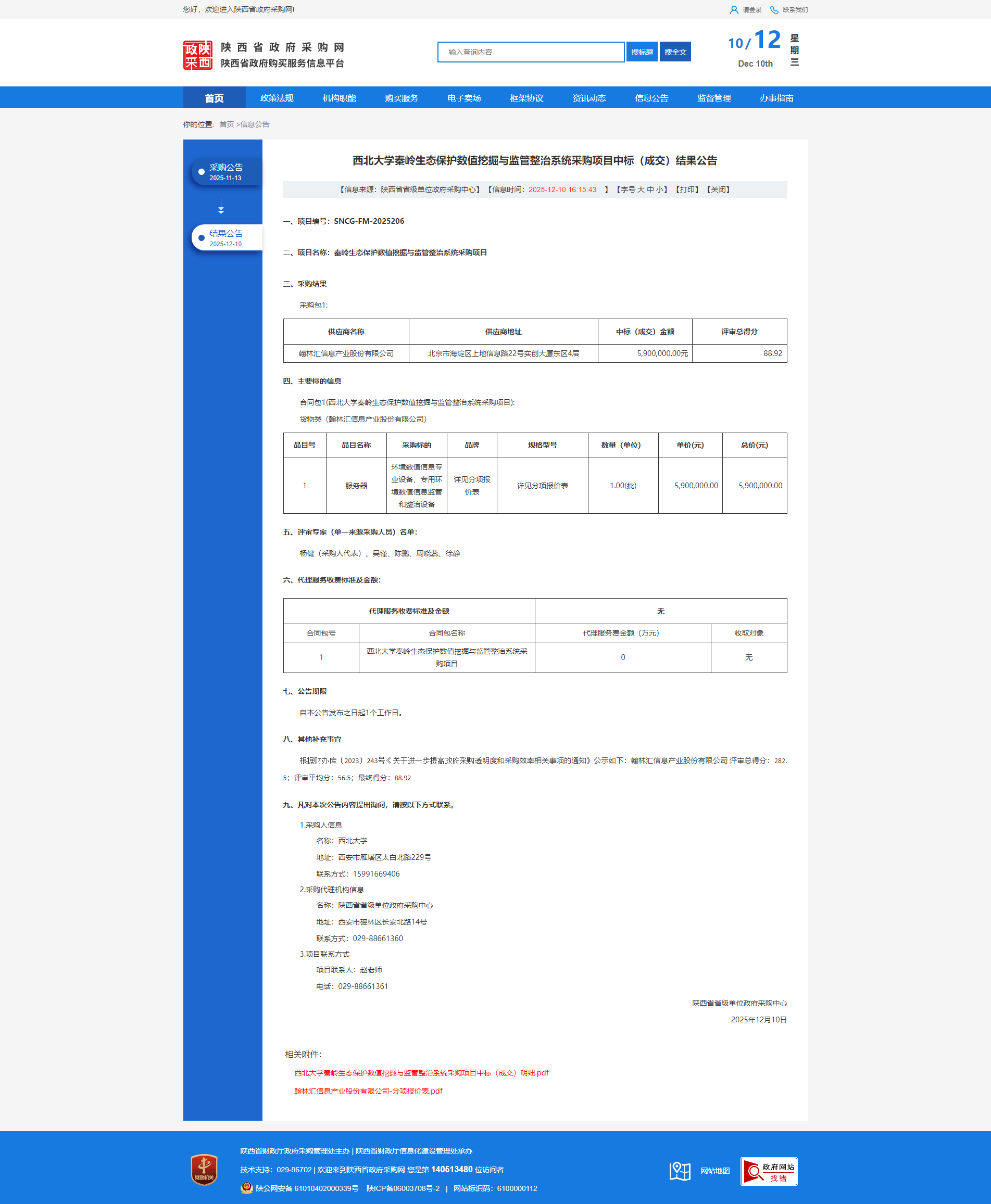 MILAN.COM秦岭生态保护数值挖掘与监管整治系统采购项目中标(成交)结果公告