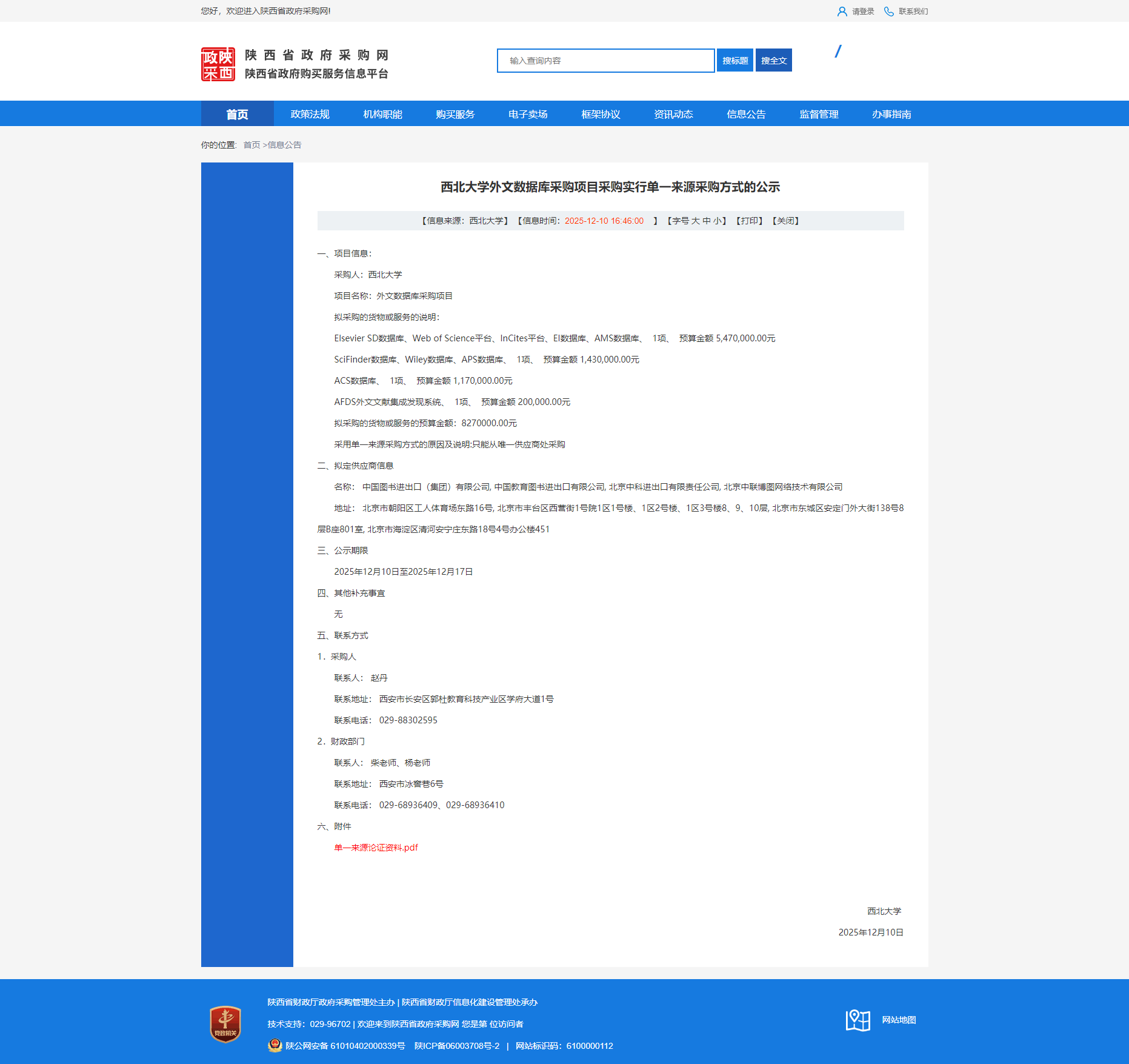 MILAN.COM外文数据库采购项目采购实行单一来源采购方式的公示